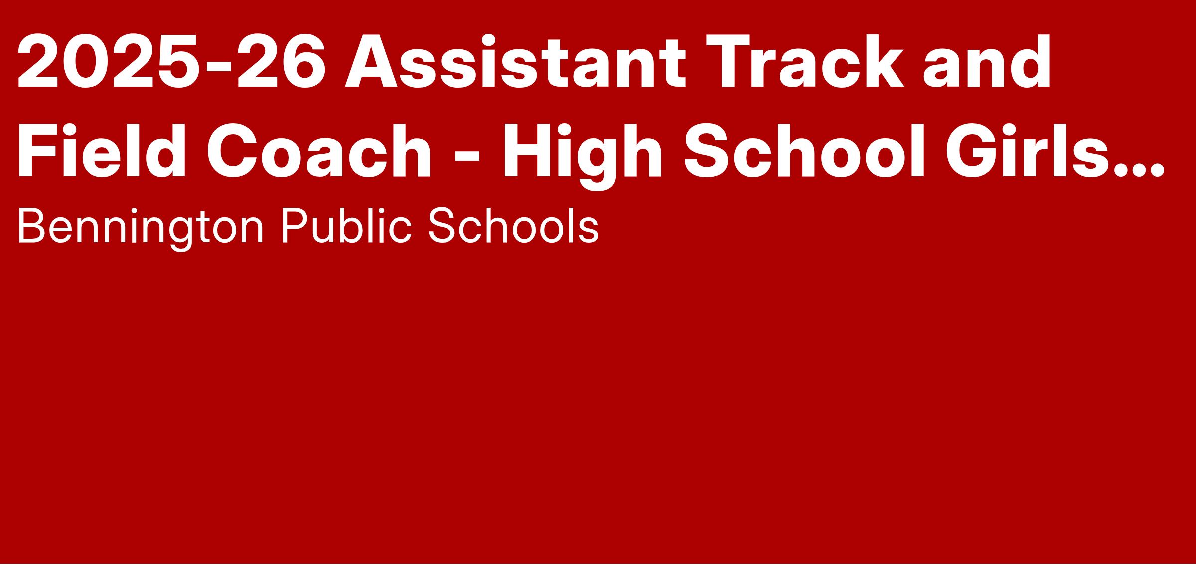 JOB TITLE: Assistant Track and Field Coach - High School Boys and Girls