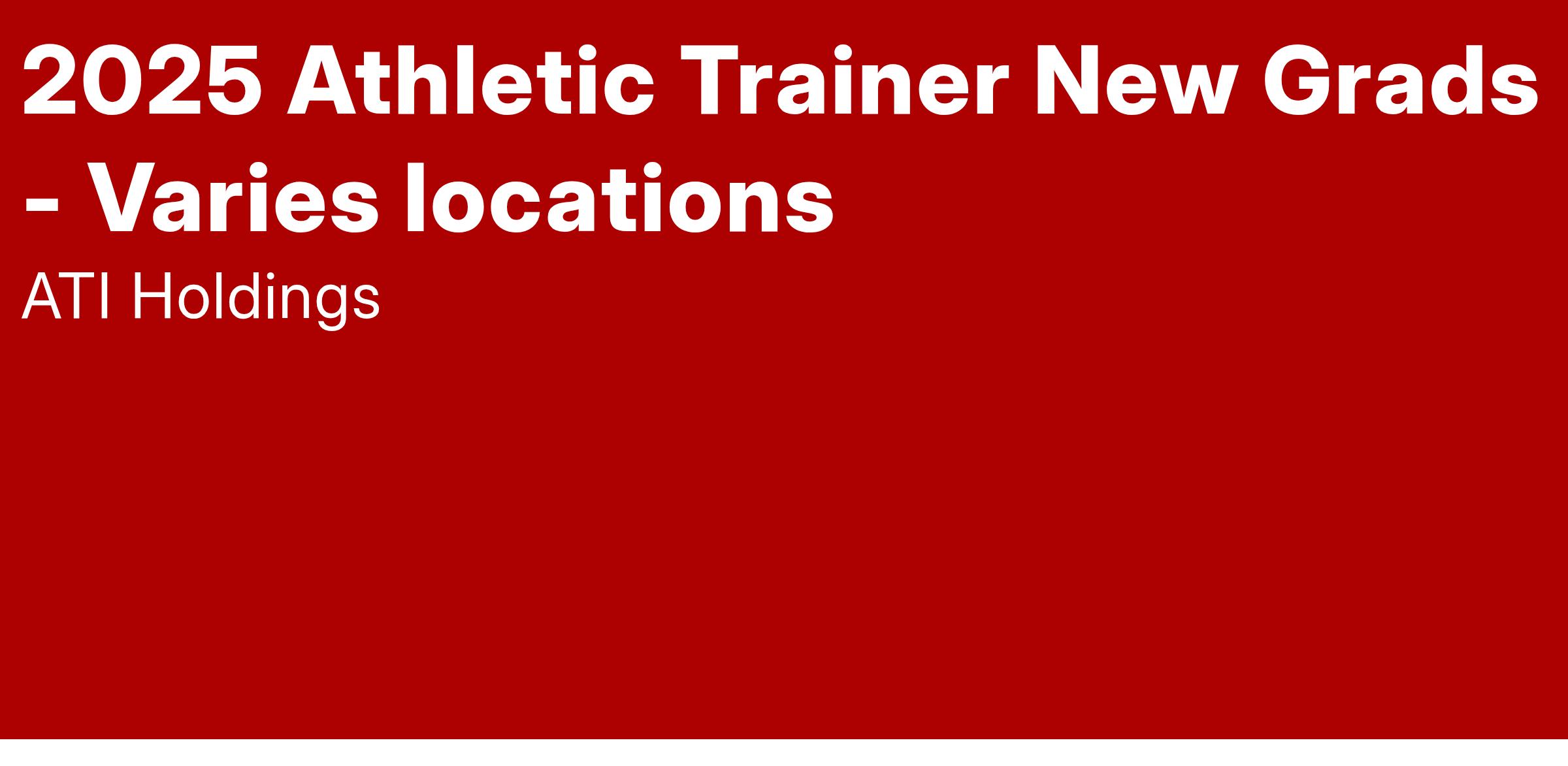 Are you an Athletic Trainer looking to thrive in a supportive, balanced environment? Join ATI, where you’ll be part of a team redefining MSK care. With a mission to deliver exceptional patient outcomes and empower clinicians to succeed, we provide the resources and opportunities to help you grow professionally and personally.