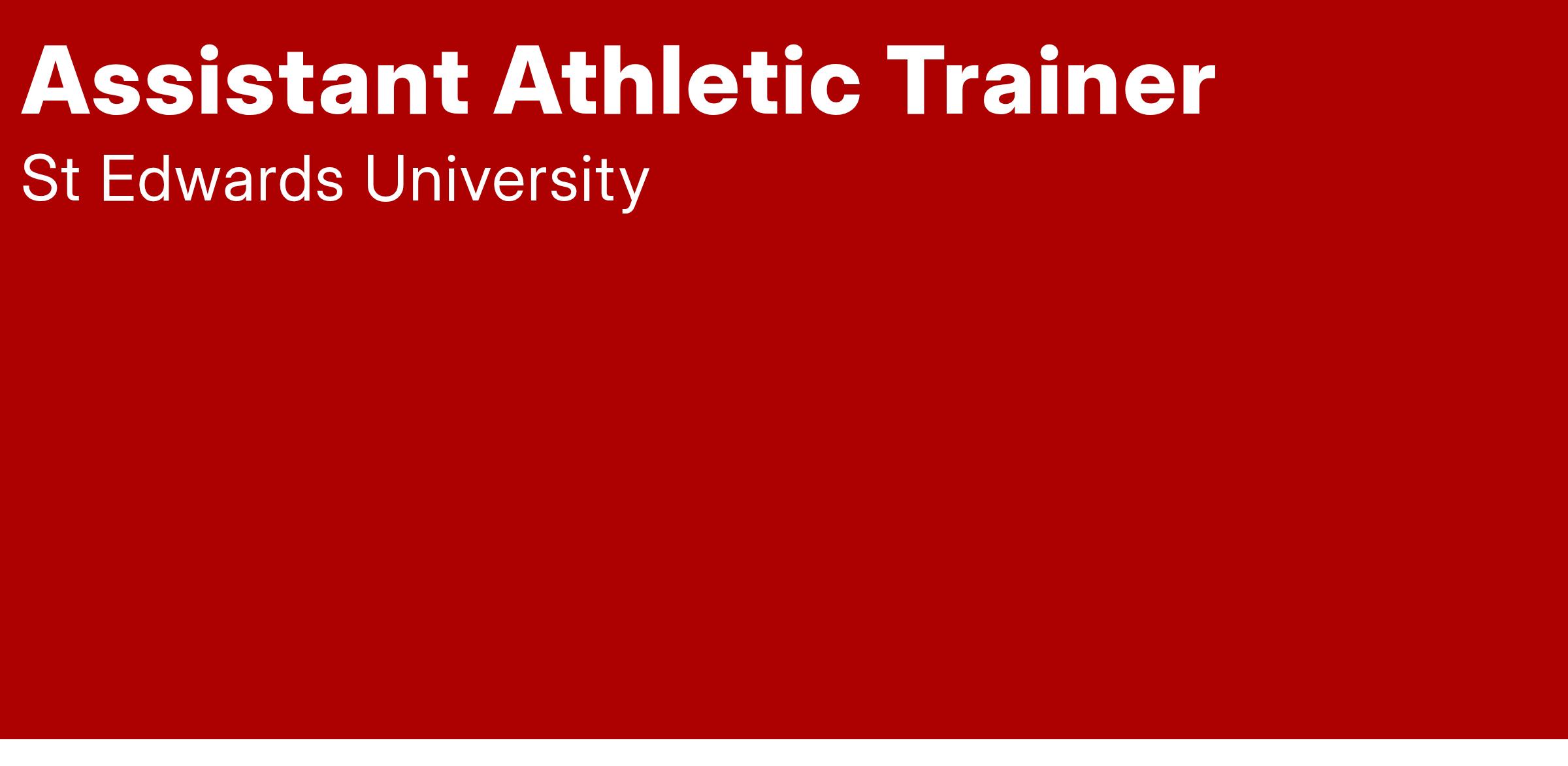 St. Edward's University of Austin, Texas invites applications for the position of Assistant Athletic Trainer. The Athletic Trainer position will work in conjunction with the Director of Sports Medicine to coordinate the care of student athletes on a day-to-day basis including prevention, evaluation, management, treatment and rehabilitation of both short- and long term injuries. This position will commit to the university's mission and athletic department's vision of excellence. For additional compensation and experience, this job includes teaching one course every fall and spring semester.
