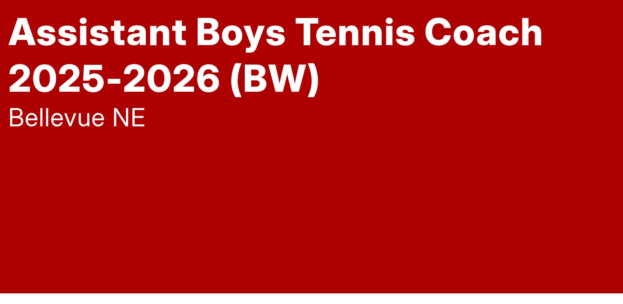 Bellevue West High School is accepting applications for an Assistant Boys Tennis Coach.