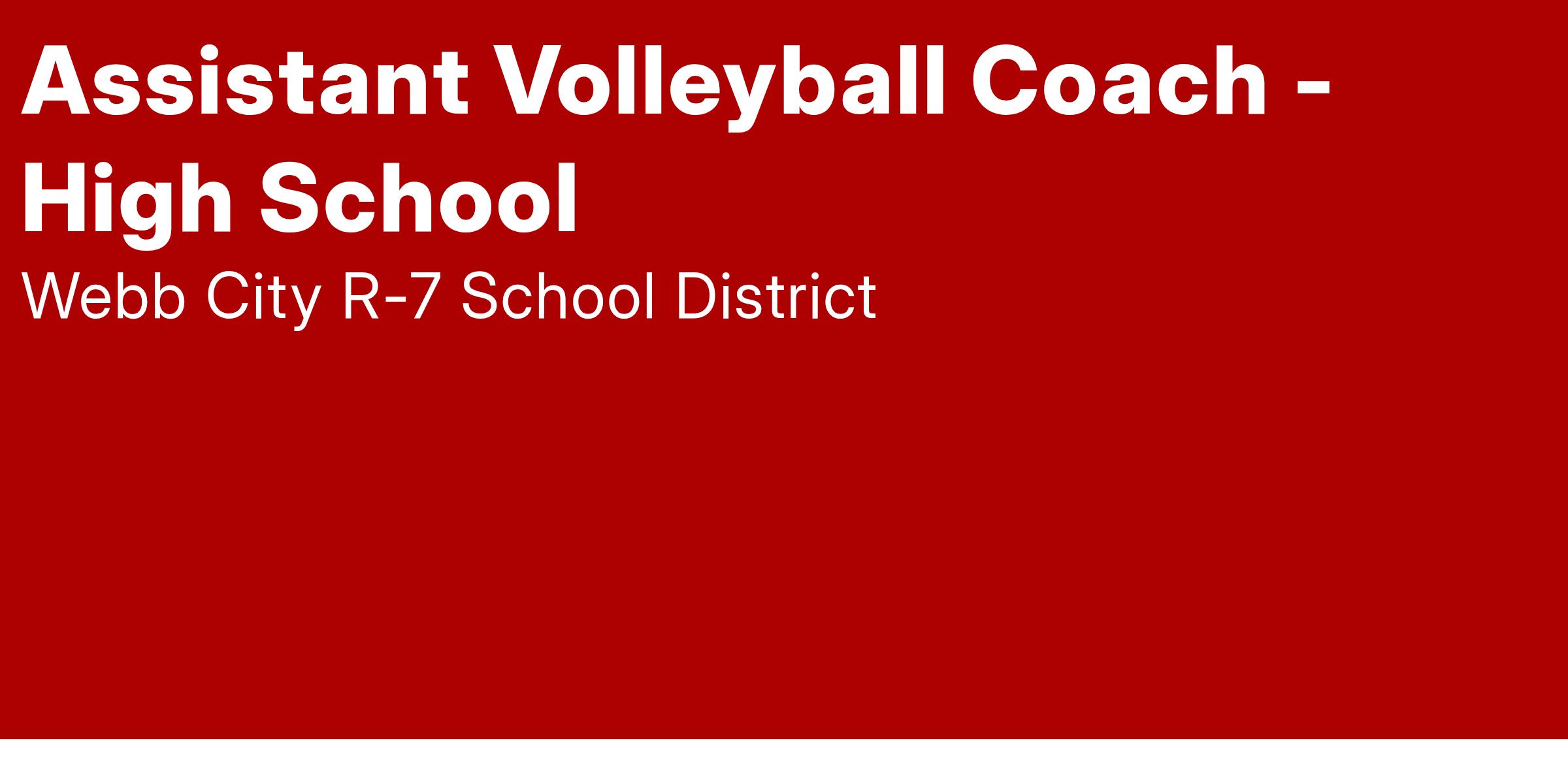 The Webb City R-7 School District is seeking applicants for the position of Assistant Volleyball Coach beginning the 2025-2026 school year. Letters of interest for internal candidates may be emailed to Jeff Wilkie at jwilkie@wcr7.org or John Roderique at jroderique@wcr7.org.