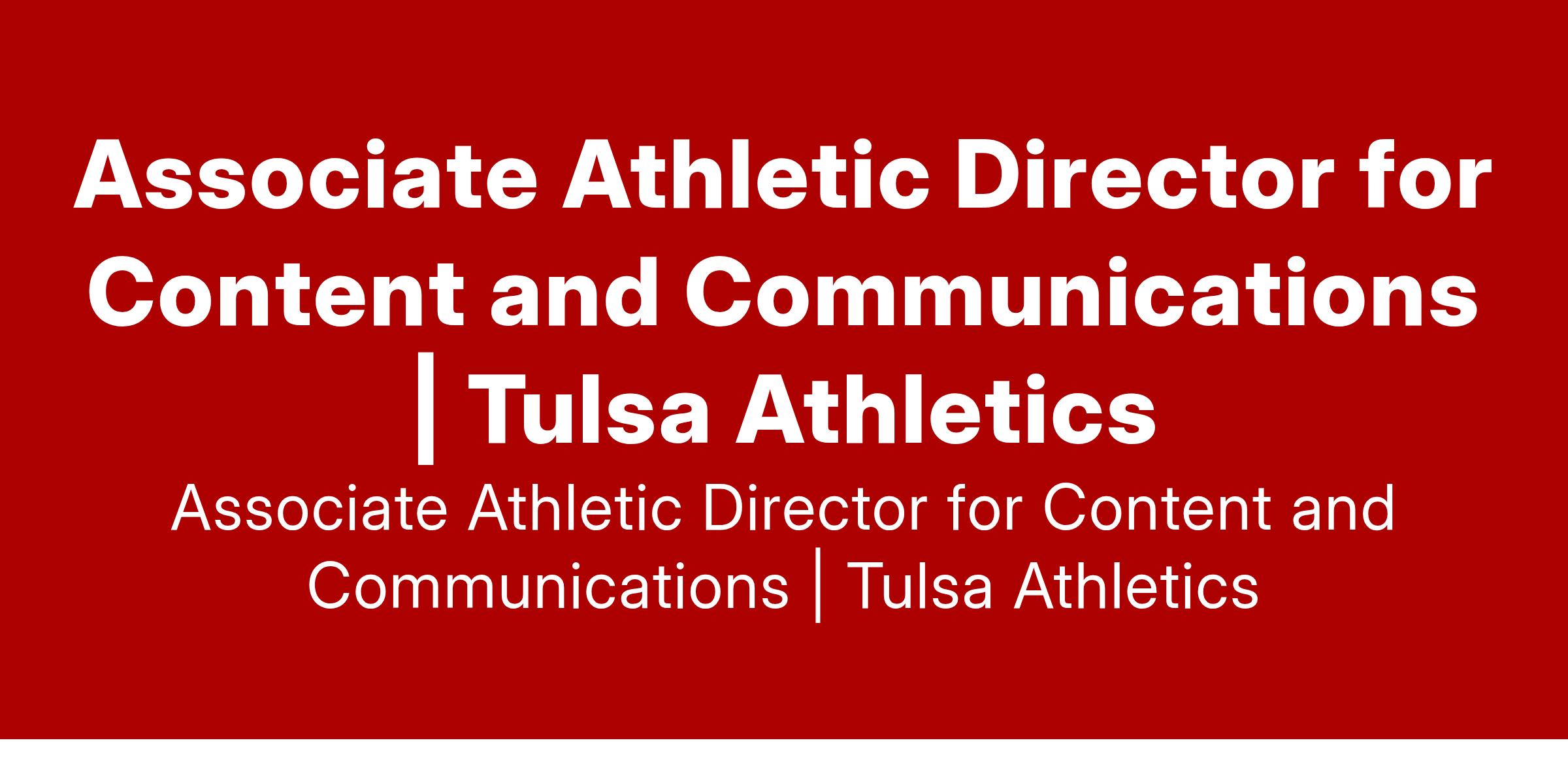Tulsa, Oklahoma, Responsible for oversight of the Content and Communications offices in the athletic department under the rules and regulations of the NCAA, American Athletic Conference and The University of Tulsa. Direct supervisor of Director of Media Relations, Associate Media Relations Director, Director of Broadcasting, Director of Content, and Director of Video Production.