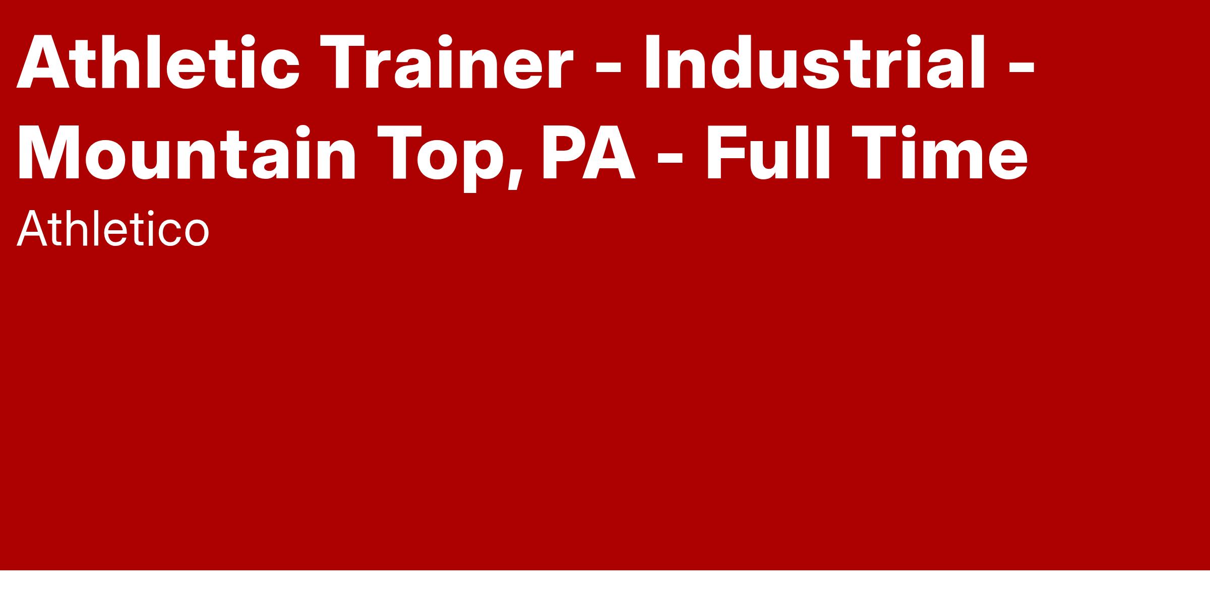 Pivot Onsite Innovations has an immediate need for an experienced and passionate Industrial Athletic Trainer at our client’s site in Mountain, Top, PA. This position offers an opportunity to work at a dynamic worksite and make an impact on employee health, wellness, and safety!