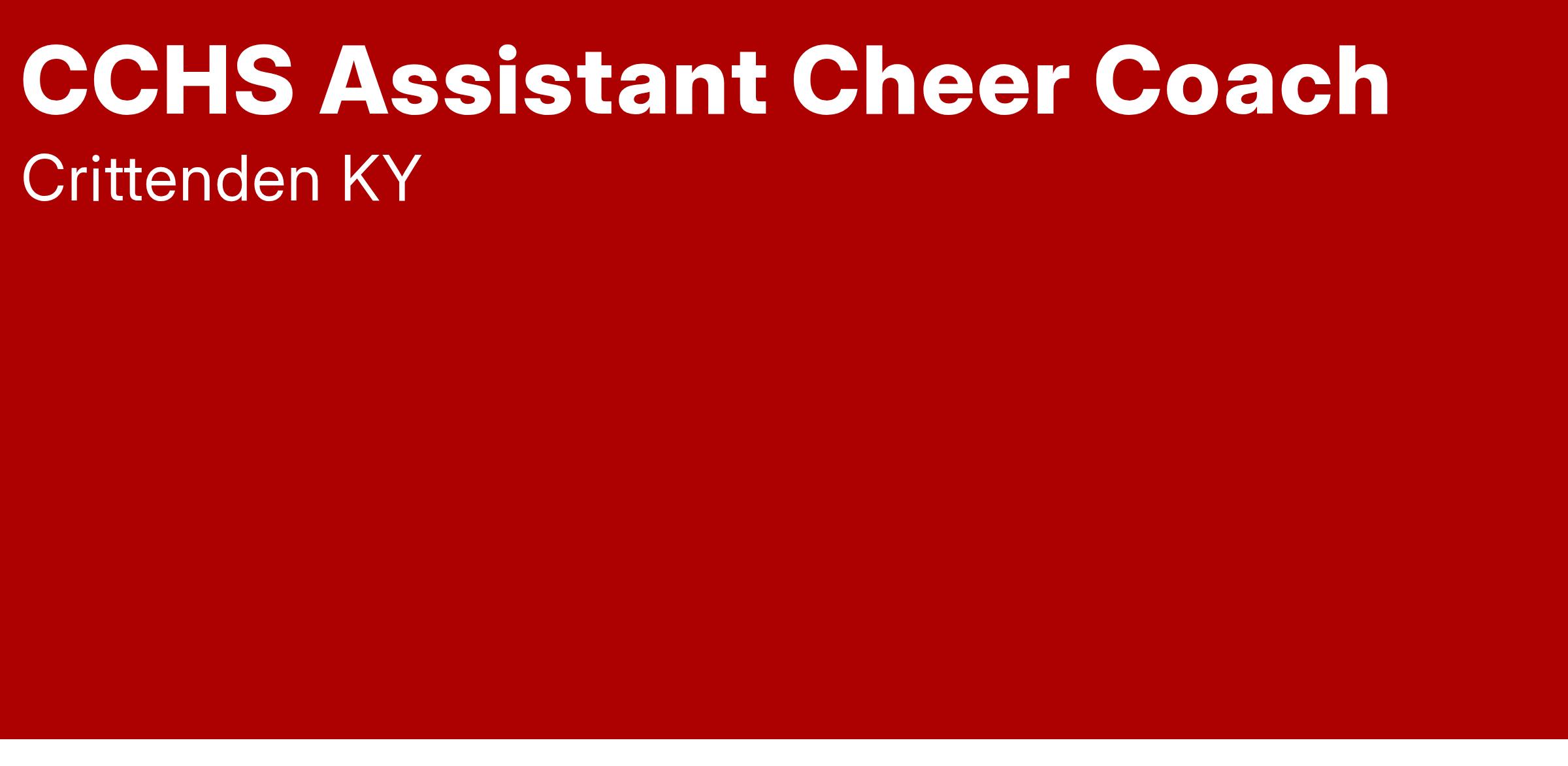 Applications are being accepted at Crittenden County High School for Assistant Cheerleading Coach for the 2025-26 school year. The pay for this position is a $1650/year. Candidates employed by the school system with cheer experience will be given preference.