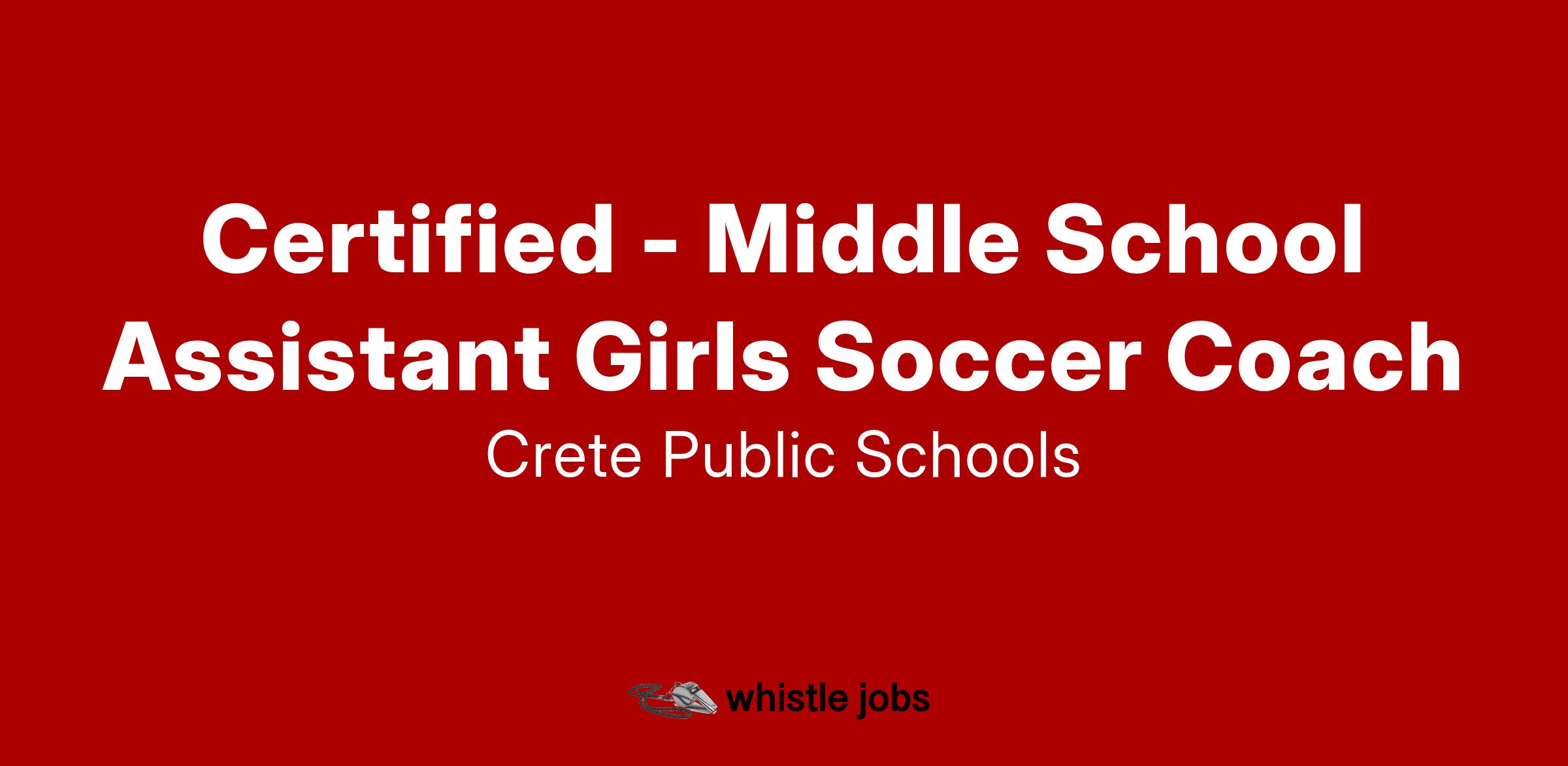 Crete Public Schools is seeking applications for a Middle School Assistant Girls Soccer Coach. Position starts with the 2025-2026 season. This position follows the extra-duty salary schedule and terms found in the negotiated agreement.