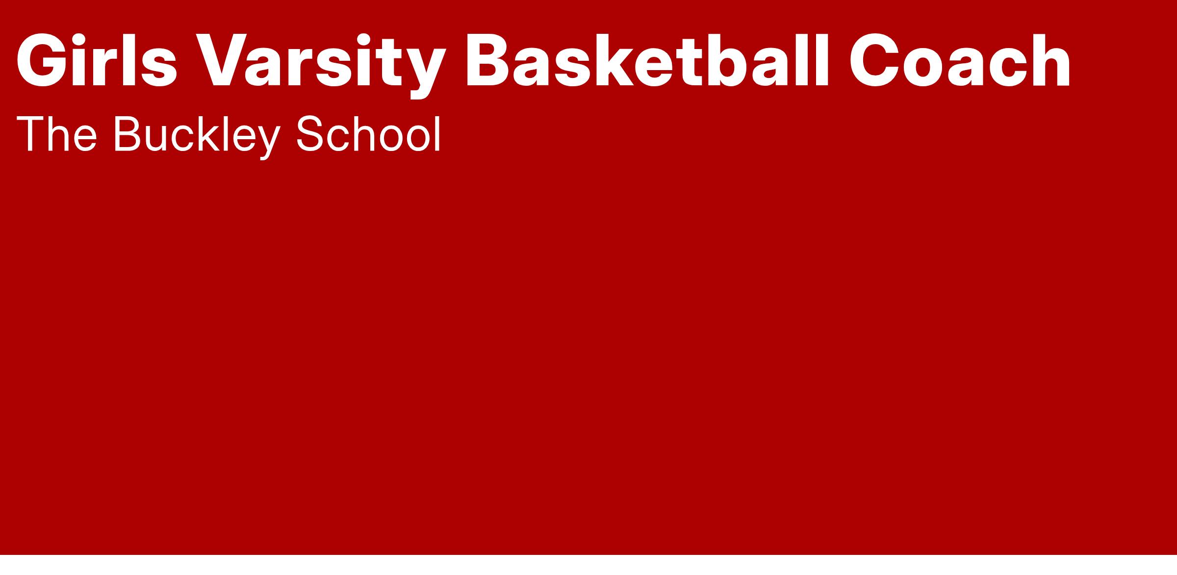 The Buckley School is seeking a qualified Varsity Basketball Coach to coach the girls' varsity basketball team for the 2025-2026 school year. Responsibilities may include assisting with organizing and running practices, directing the activities of an assistant coach, scheduling games, coaching at games, scouting and overseeing individual and team conditioning workouts, compiling statistics administering basic first aid, and other duties as required.