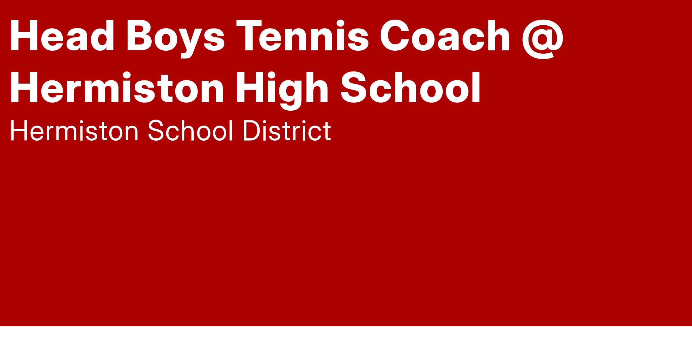 Hermiston School District is seeking qualified applicants for the position of Head Boys Tennis Coach at Hermiston High School. This position is an excellent opportunity for an exceptional coach who has demonstrated the abilities, skills, and knowledge to lead a quality tennis program. Teaching positions are available for the 2025-26 school year.