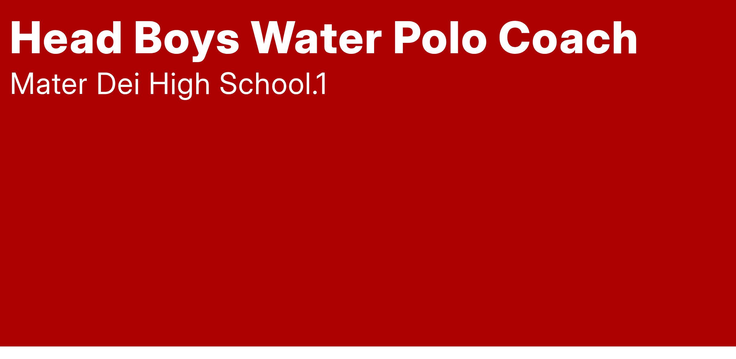 Mater Dei High School, a Catholic, co-educational, college preparatory high school of the Diocese of Orange has an immediate opening for a Head Boys Water Polo Coach.