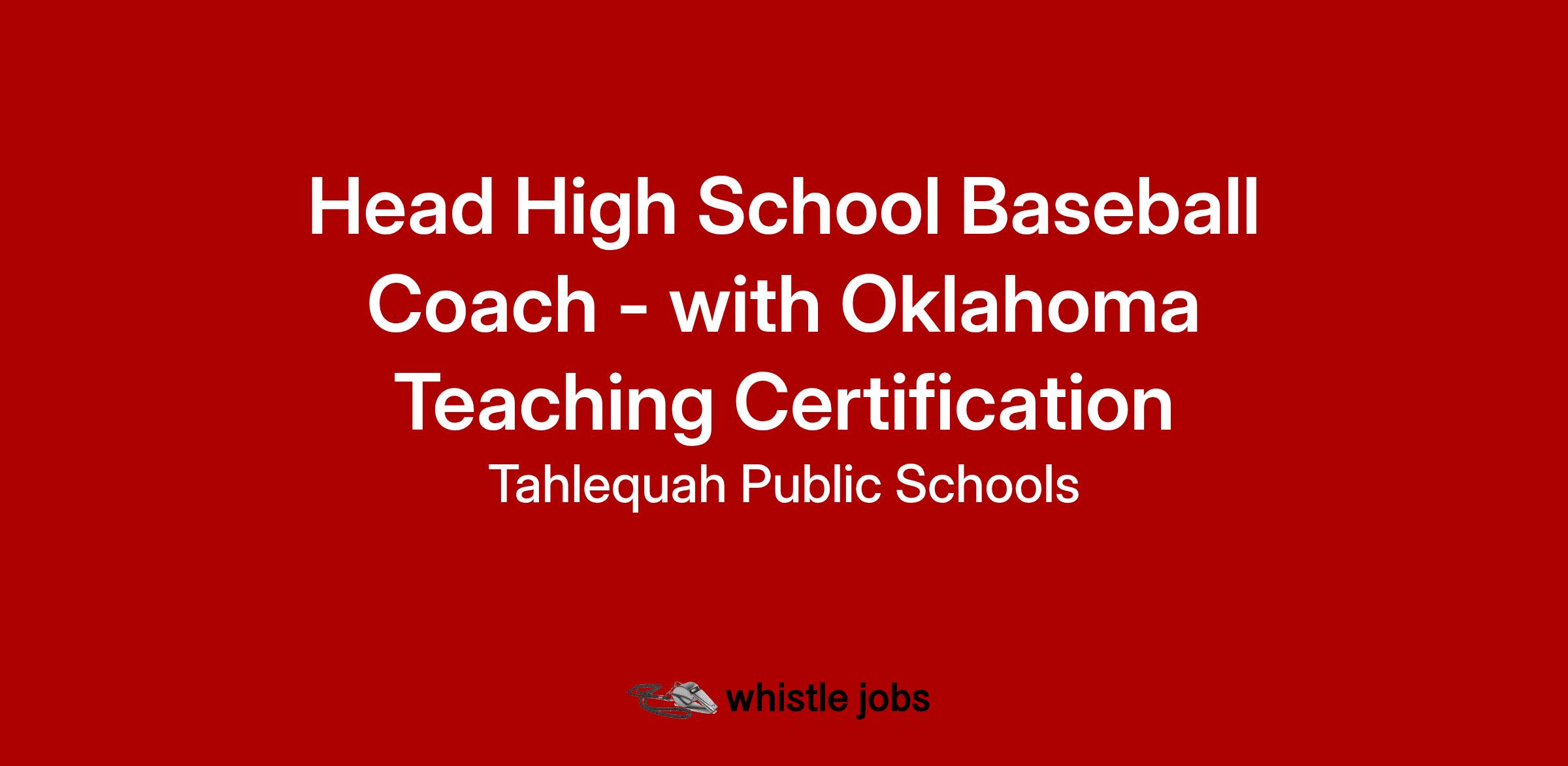 JOB TITLE: HEAD HIGH SCHOOL BASEBALL COACH - ANY OKLAHOMA