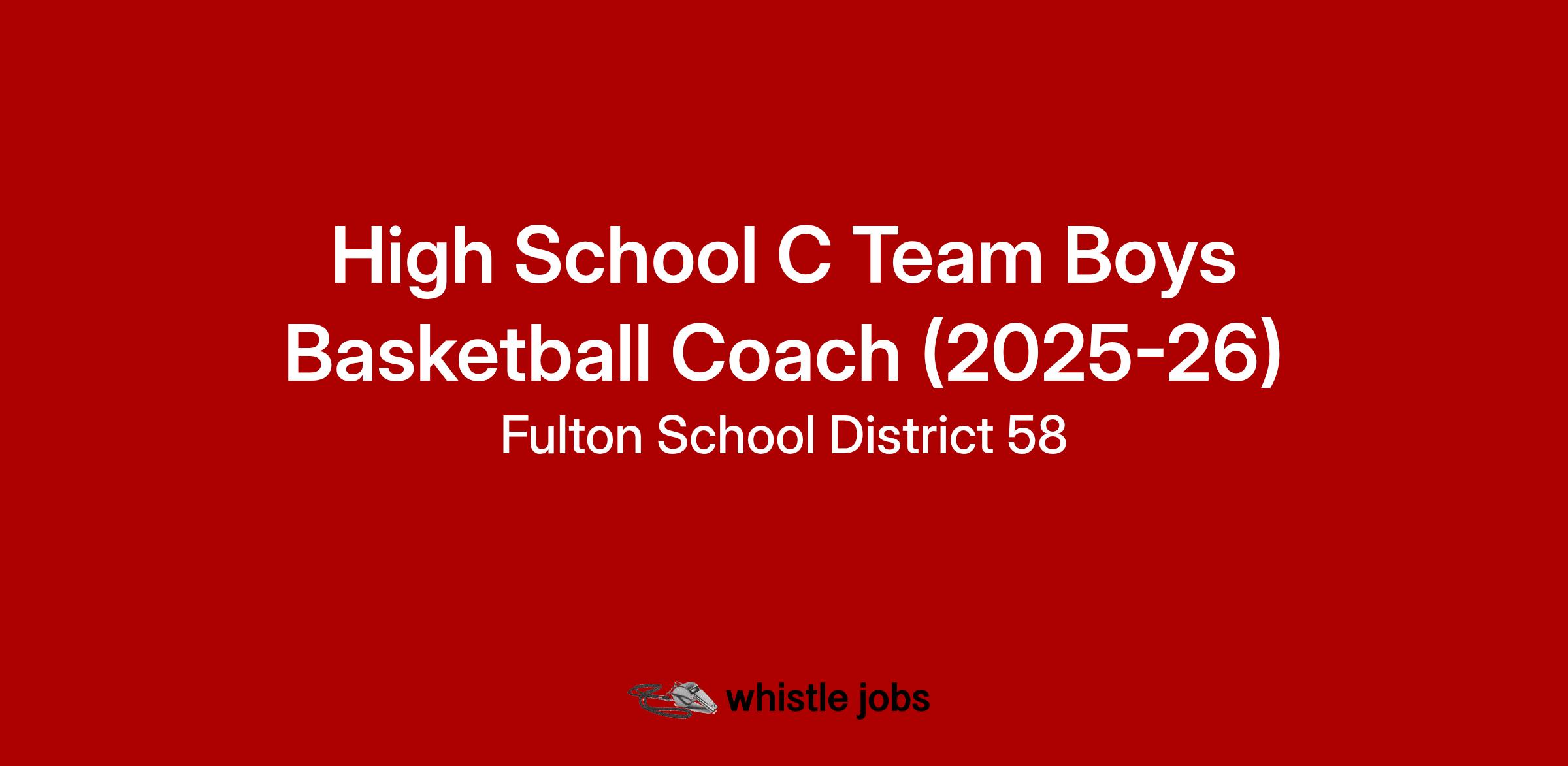 Fulton Public Schools is seeking highly qualified candidates to fill a High School C Team Boys Basketball Coach vacancy for the 2025-26 season. Fulton School District is committed to positive coaching, culture, and collaboration with staff, students, and the community.