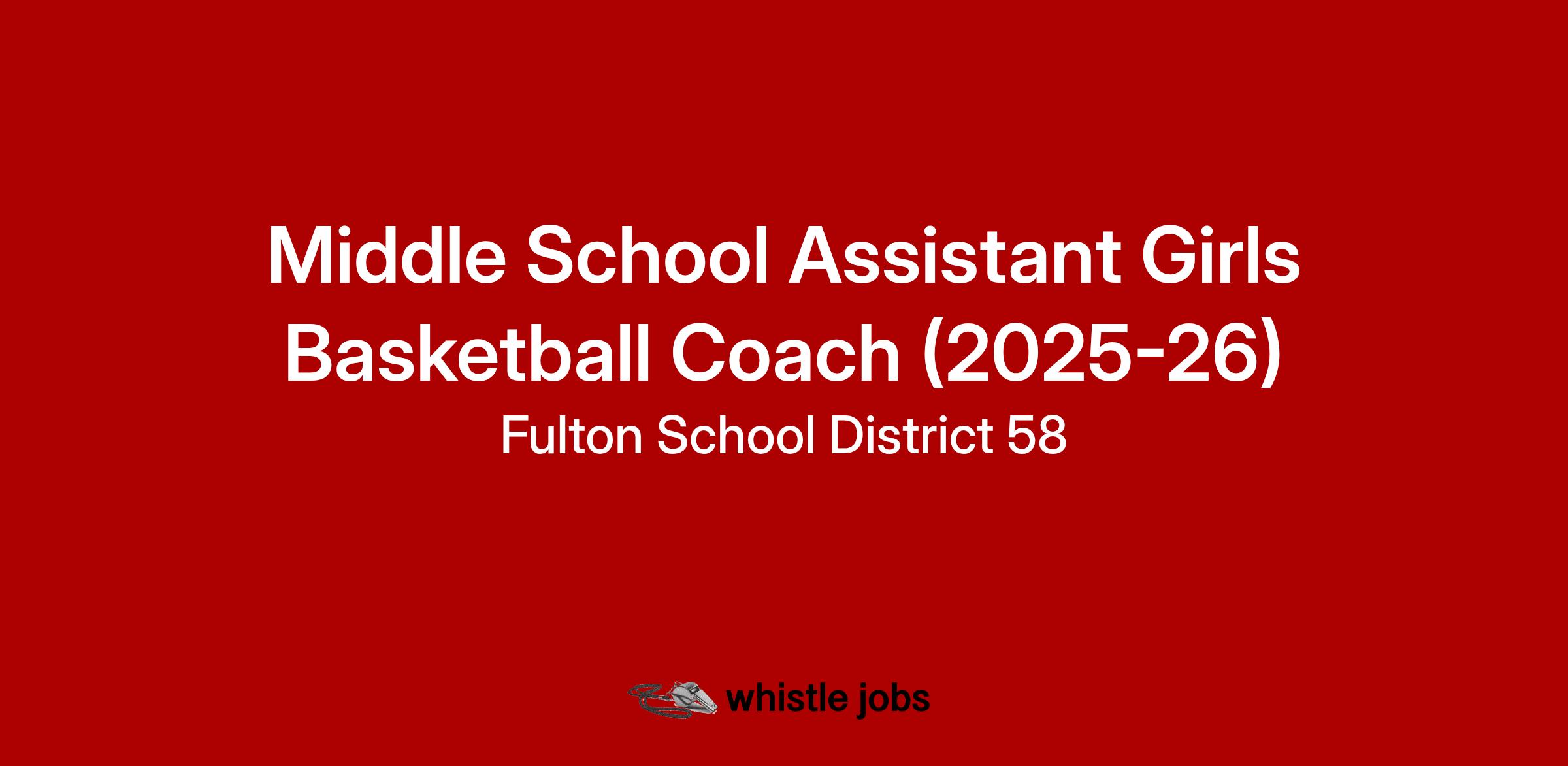 Fulton Public Schools is seeking highly qualified candidates to fill a Middle School Assistant Girls Basketball Coach vacancy for the 2025-26 season. Fulton School District is committed to positive coaching, culture, and collaboration with staff, students, and the community.