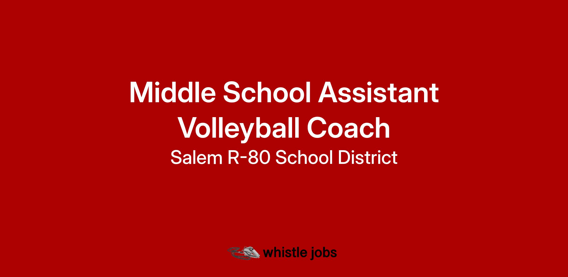 The Salem R80 School District has an opening for an Middle School Assistant Volleyball Coach for the 2025-2026 school year. Interested applicants should complete an online application. Questions can be directed to Dan Copeland, Assistant Superintendent, 1409 W Rolla Road, Salem, MO 65560, by email at dan.copeland@salemr80.org or by calling (573) 729-6642.