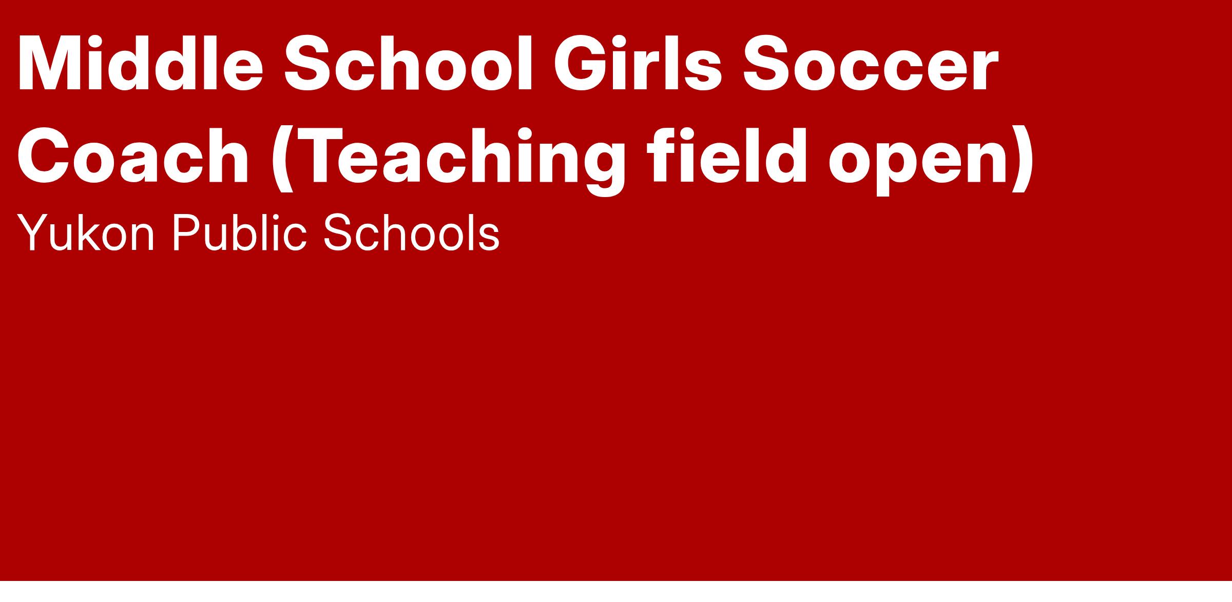 Yukon High School is accepting applications for a MIDDLE SCHOOL GIRLS SOCCER CLUB COACH.