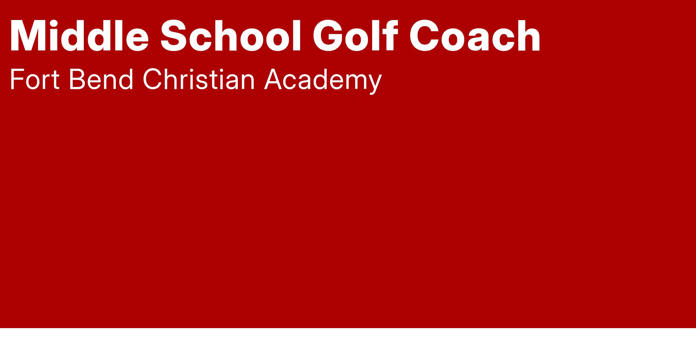 Fort Bend Christian Academy is looking for a Middle School Golf Coach who sees athletics as an opportunity to glorify God and enjoy Him by discipling players off the course, striving for excellence on the course, loving our neighbors through the course, and sending our players out as disciple makers into the world.