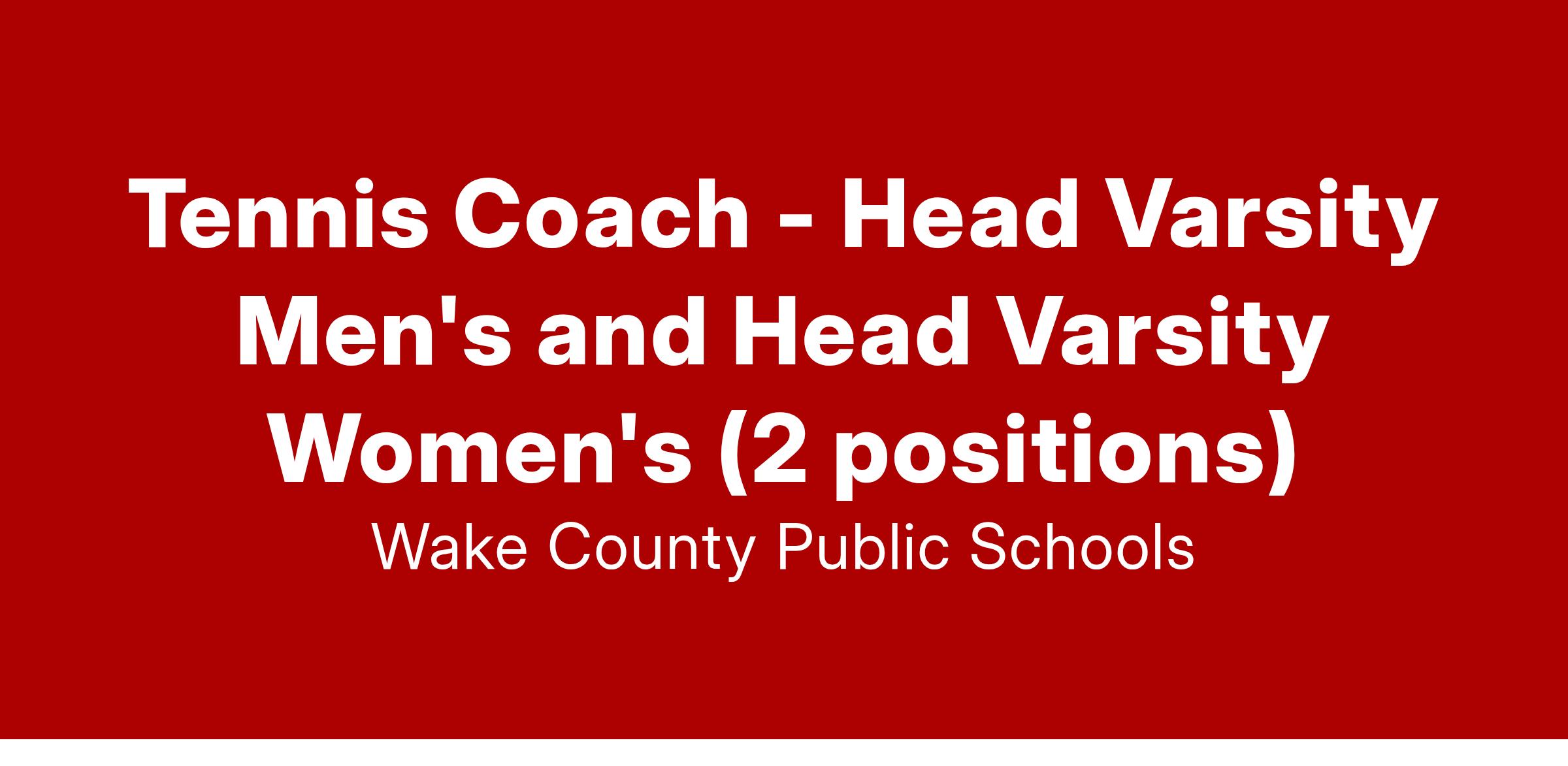 Tennis Coach - Head Varsity Men's and Head Varsity Women's (2 positions)