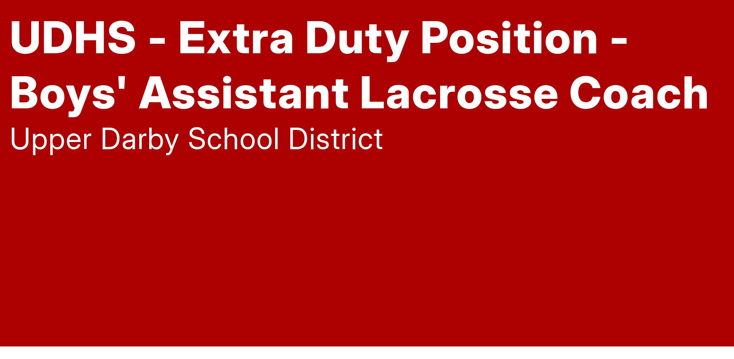 Extra Pay for Extra Duty Position - Upper Darby High School - Boys' Assistant Lacrosse Coach
