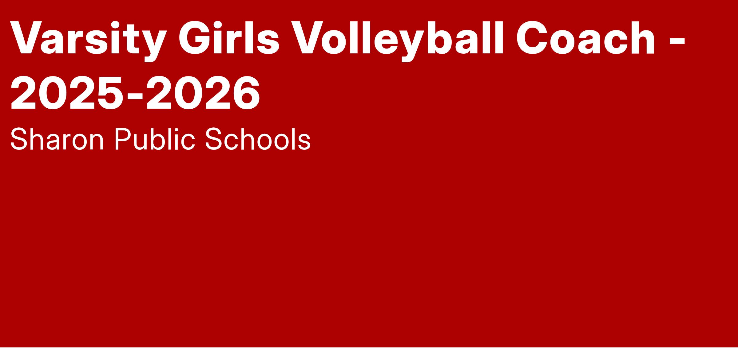 Sharon High School seeks a coach for for the folllowing position: Varsity Girls Volleyball Coach
